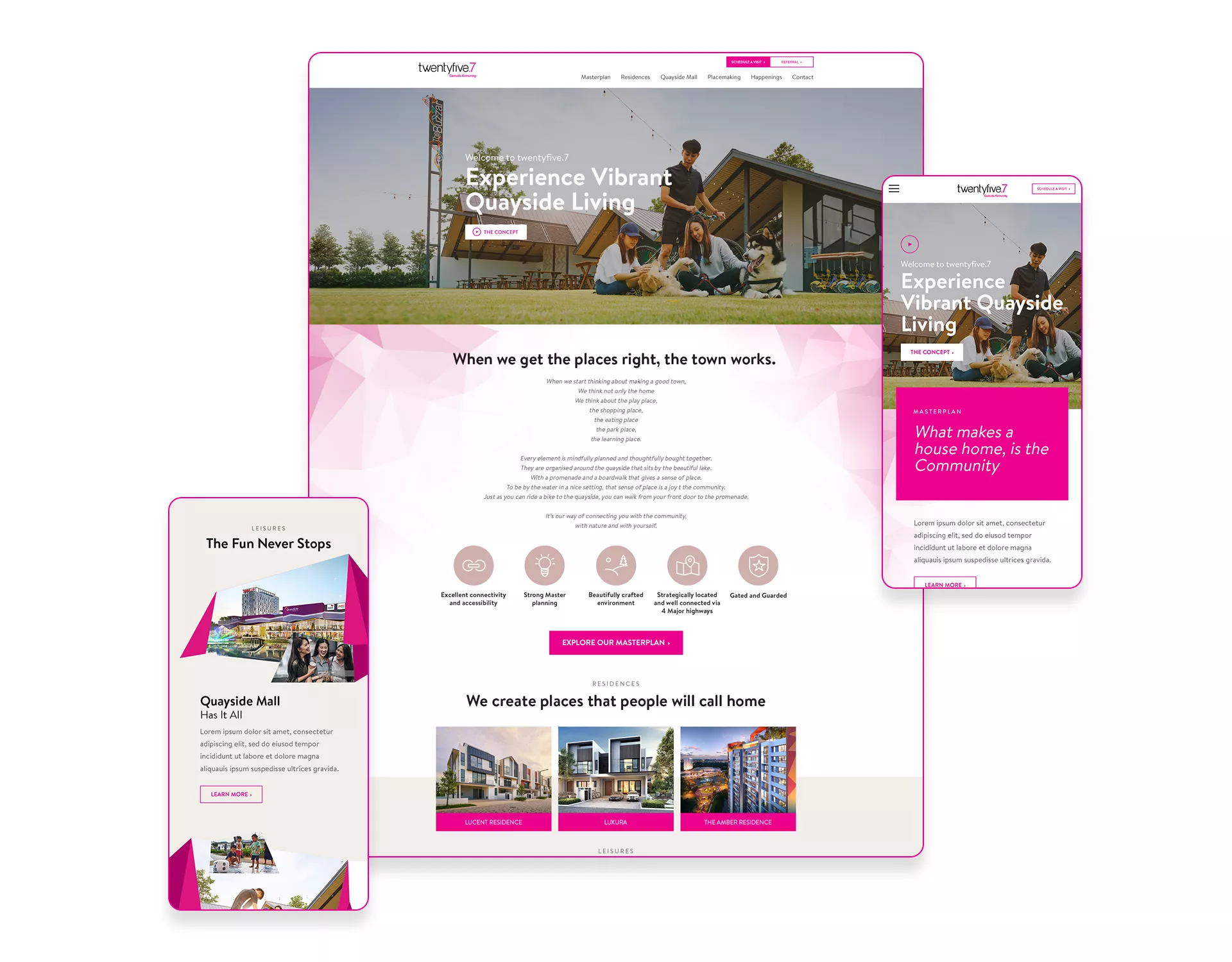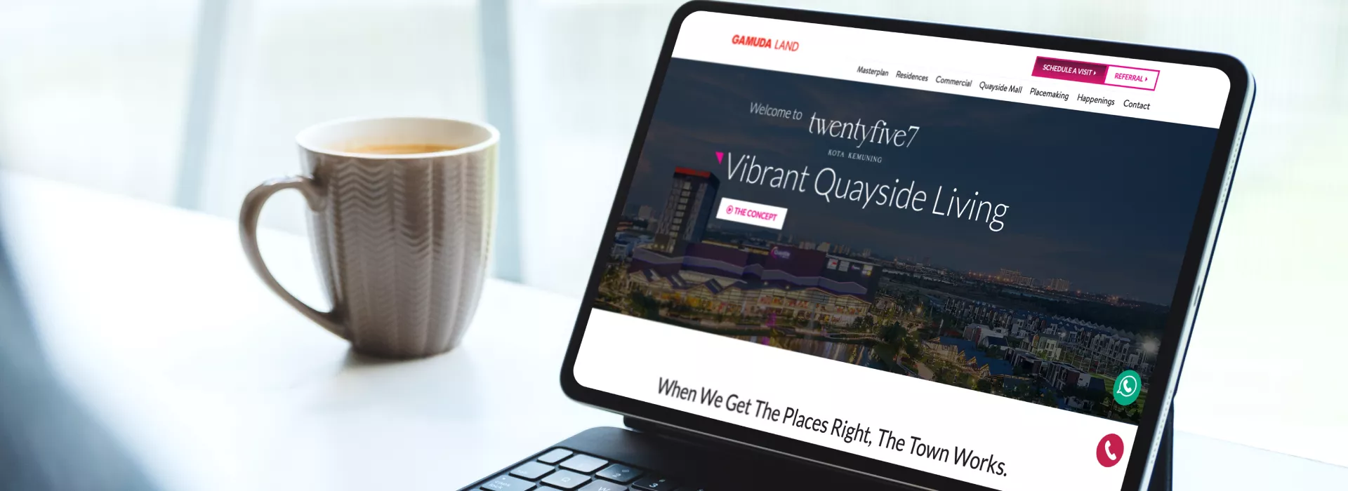 The website showcases Gamuda Land’s premier township, TwentyFive7, listing their available properties and their pricing and information alongside 3D VR tours to create interest to enquire and schedule appointments to visit their sales gallery.