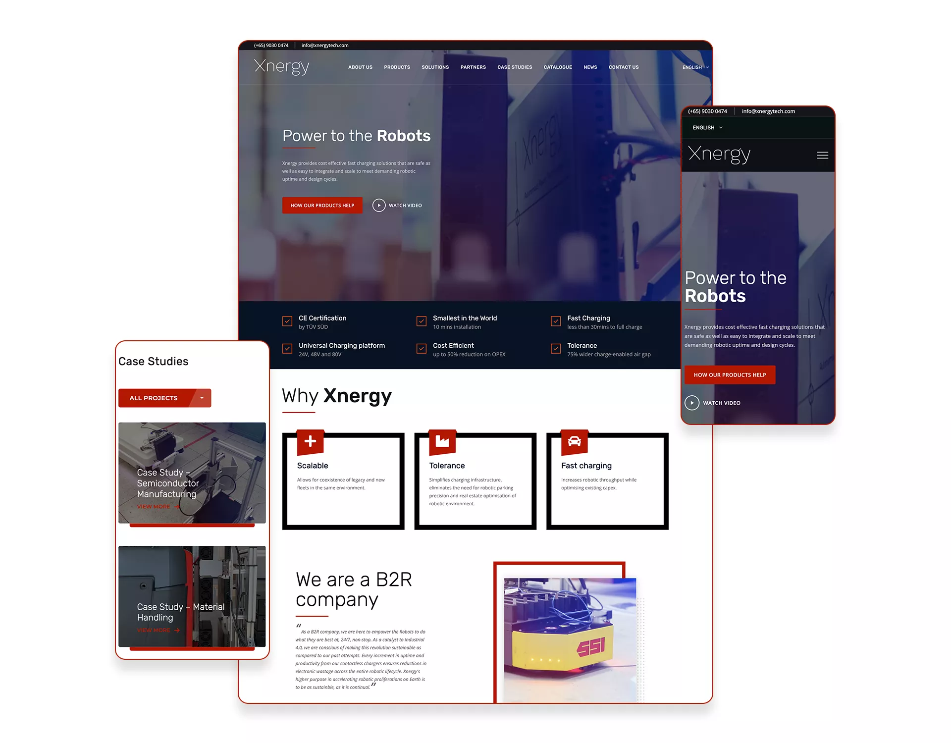 In our strategy for revamping and redesigning Xnergy's website, we focused on conveying the passionate expertise of their international team dedicated to enhancing robotic uptime and driving the advancement of Industry 4.0. With headquarters in Singapore and operations in Shanghai and Boston, we aimed to create a website that effectively showcases their innovative power delivery solutions for robots. This involved highlighting their products, sharing insightful case studies, and presenting profiles of their accomplished team. We also made it easy for potential clients to discover Xnergy online, learn about their mission, and reach out for further inquiries. The revamped website serves as a window into their world, where technology, sustainability, and global progress converge.